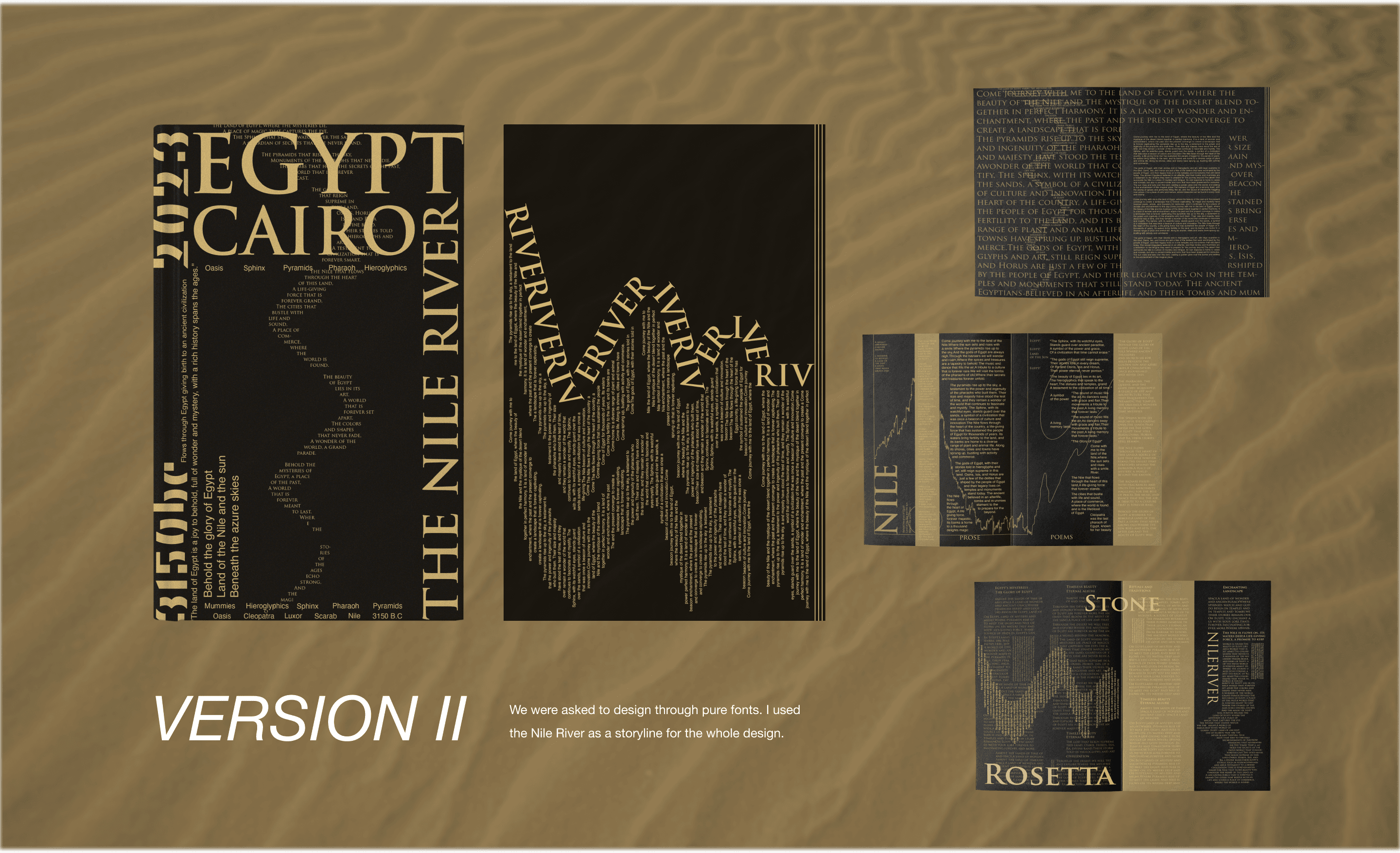Based on the fonts I designed, I wanted to recreate the charm of ancient and modern Egypt.